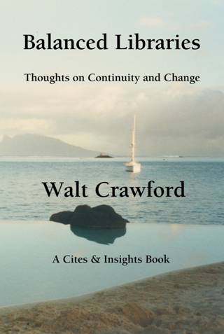 Ø I believe the fifteen essays that make up Balanced Libraries work better as a book than as fifteen different Cites & Insights Perspectives. Some chapters can stand alone; some require the context of earlier and later chapters. It’s really too long for the ejournal.